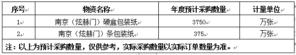 一、招標(biāo)項(xiàng)目名稱(chēng):2023-2025年合作品牌條、盒包裝紙采購(gòu)之南京(炫赫門(mén))項(xiàng)目。
