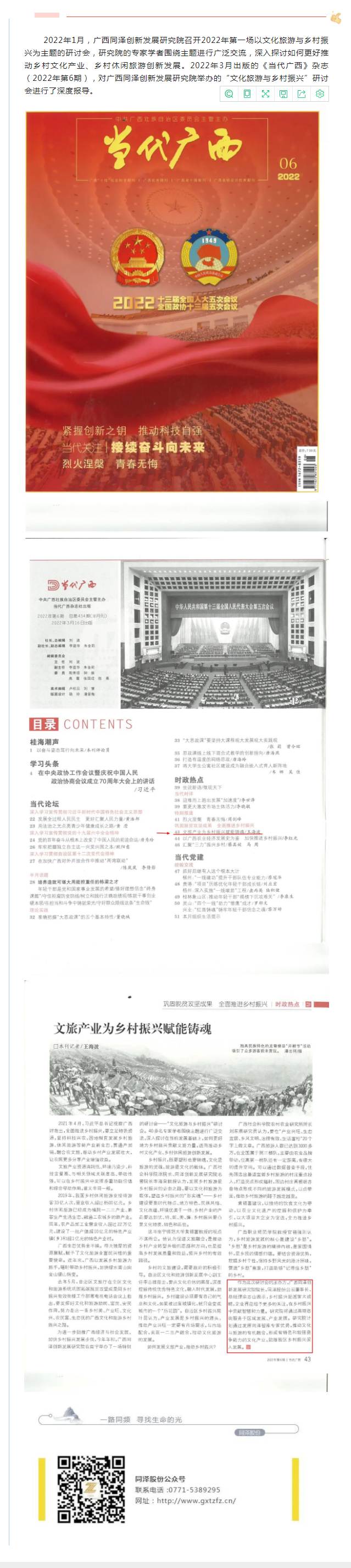 同澤研究院“文化旅游與鄉(xiāng)村振興”研討會獲《當(dāng)代廣西》雜志報(bào)導(dǎo)